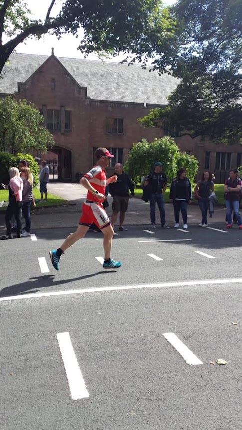 So out onto the run I was determined to run a good marathon, Phil shouted I was 12th out of T2 in AG, and to run the first 10km to start the loop focussing on form and good strong technique and not to worry about pace or time. I had a time in my head of 45 mins to get to the loop and I was absolutely bang on as I turned to start the first of 3.5 laps around town. I then switched off and just thought about being relaxed and smooth with a good technique, taking on a gel at every feed station and carrying an extra one to drip feed throughout, I felt comfortable as I went through half way bang on my target pace (1:37) I had caught a fair few people and despite a gap of over 7 minutes opening up behind Ian, I slowly reeled him in and passed him at 18 miles, I had passed Robbie about 7 miles in too. Then as you know the last 10k is where it begins to hurt.